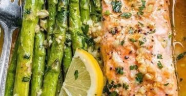 Ingredients: °4 salmon fillets, skinless Contents °1 pound (454 grams) asparagus tips °1/3 cup (75 grams) melted butter…