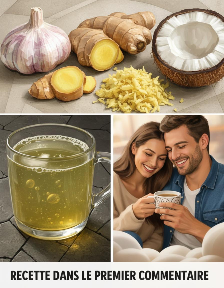 Cette recette simple — élaborée à base d’eau de coco, d’ail, de gingembre et de miel brut — est utilisée depuis des générations dans diverses cultures comme un renfort naturel pour la circulation, la vigueur physique et l’équilibre hormonal.